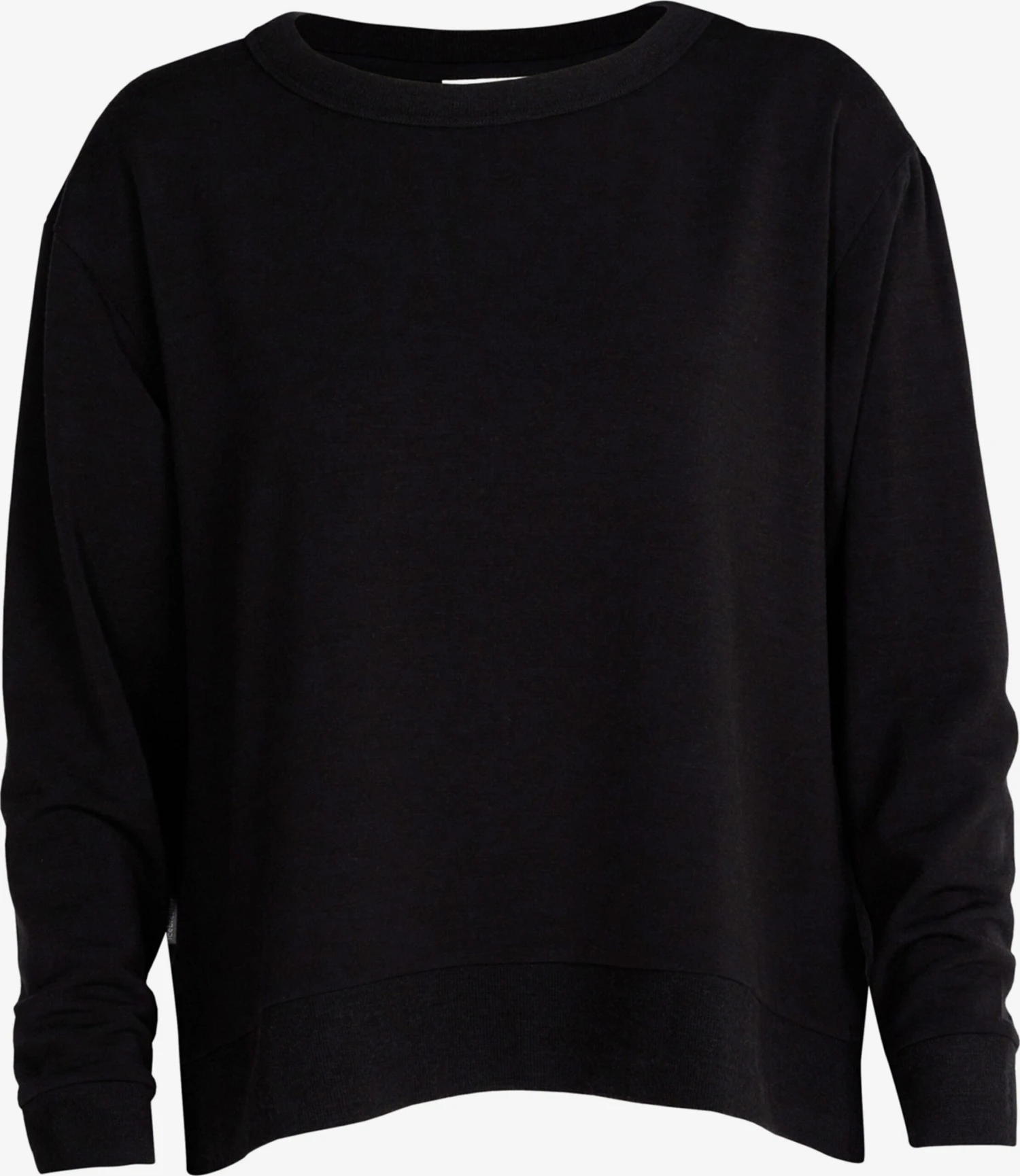 EffenSweatstofRonde halsGeribbelde kraagGeribd ceintuurtjeZijdelingse inkepingenOvercut schouderVerlengd rugpandNektapeOp staal nadenVoelt zacht aan